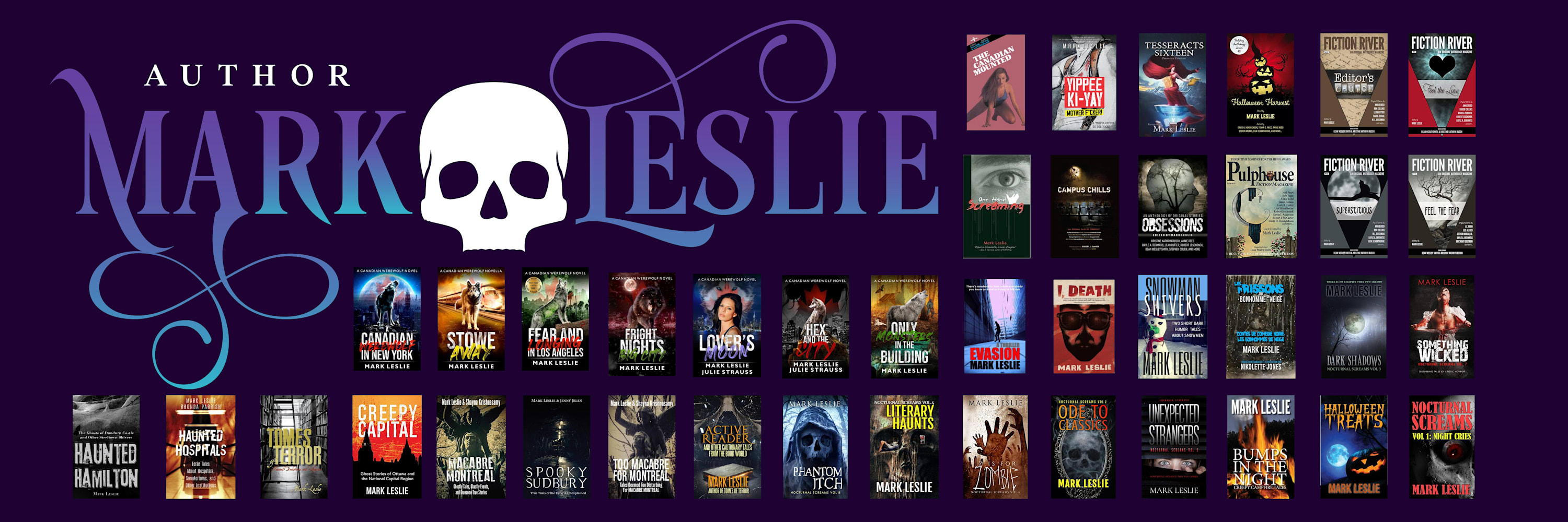 Mark is the author of "Twilight Zone" style tales, horror, humorous urban fantasy adventures, thrillers, and explorations of haunted locations.